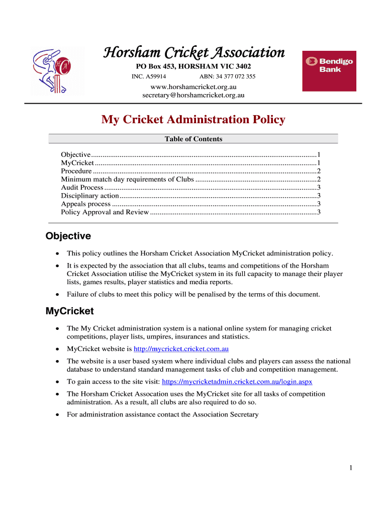 Fill out your horsham cricket association online with pdfFiller!