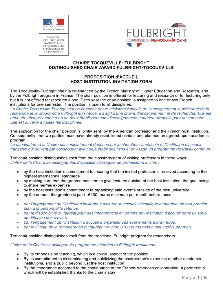 Chaire Tocqueville- Fulbright Distinguished is not the form you're looking for?Search for another form here.
