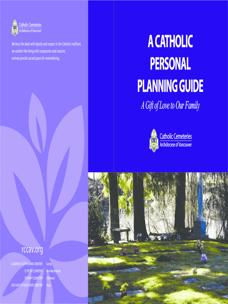 The Catholic Cemetery Planning Guide is a personal affidavit form used by individuals to plan and record their end-of-life arrangements.