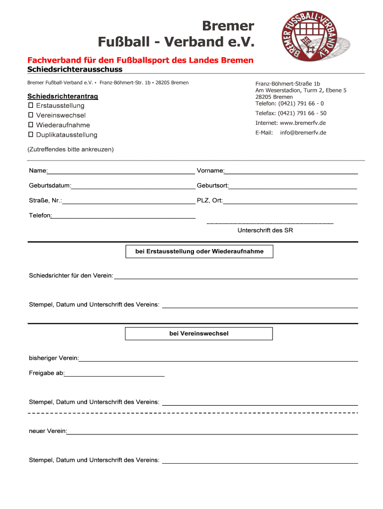 Bremer Fuball - Verband is not the form you're looking for?Search for another form here.