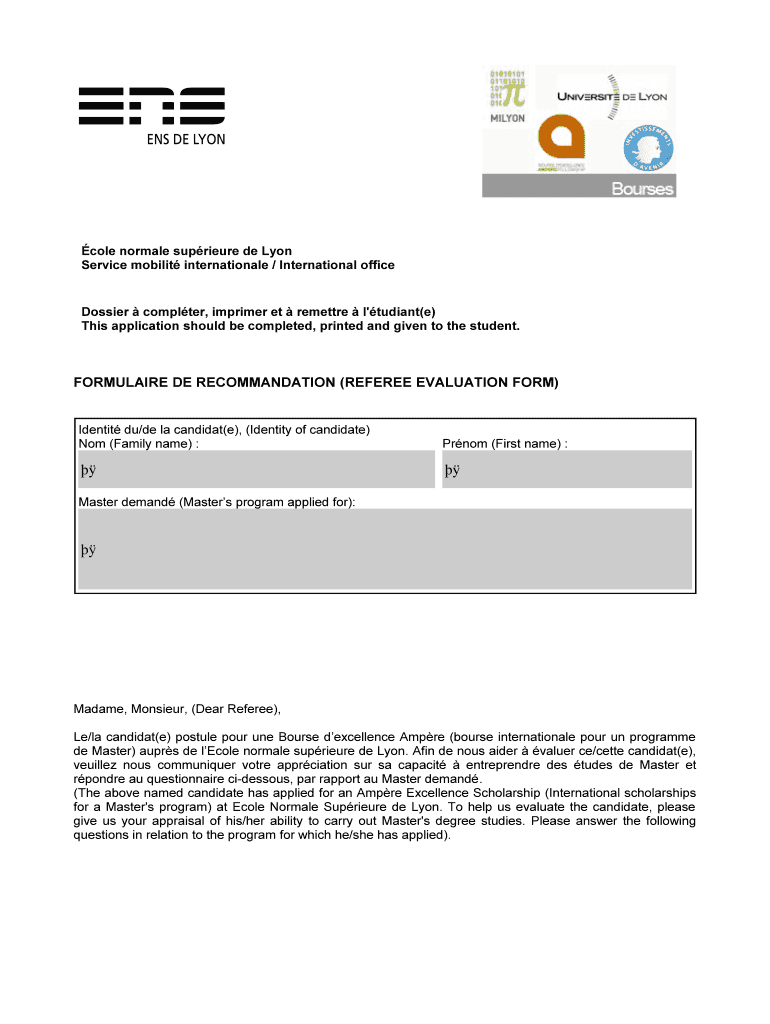 Formulaire De Recommandation Referee is not the form you're looking for?Search for another form here.