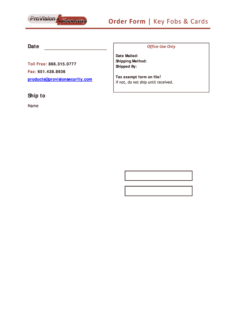 Order Form Key Fobs & Cards Date Office Use Only Date Mailed: Shipping Method: Shipped By: Fax: Tax exempt form on file? If not, do not ship until received.