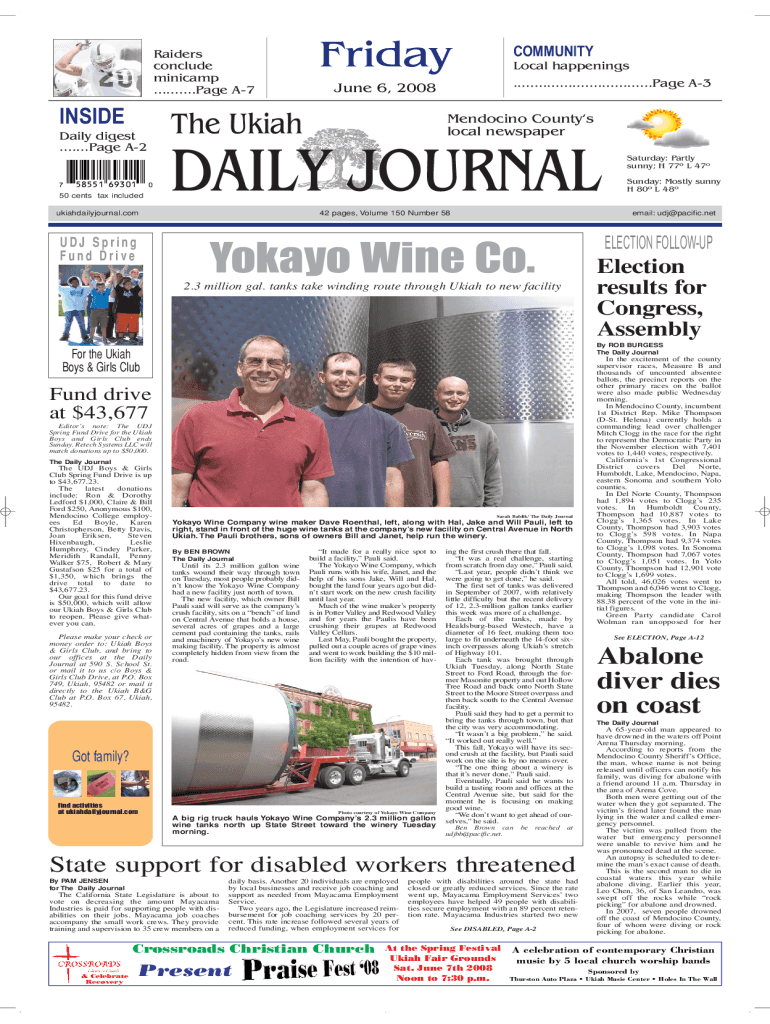 Raiders conclude minicamp ..........Page A7INSIDE 58551 69301050 cents tax includedLocal happenings .................................Page A3June 6, 2008The UkiahDaily digest .......Page A27FridayCOMMUNITYMendocino