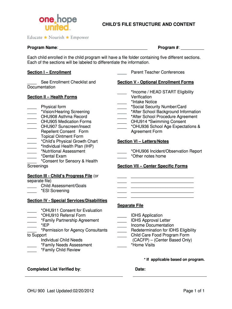 Get the free Child Program File Structure and Content Form