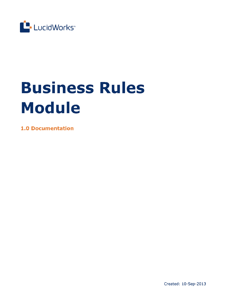 Business Rules Module 1.0 Documentation Created: 10Sep2013 Business Rules Module 10Sep2013 Table of Contents Installing the Business Rules Module 4 System Requirements 4 Installing the Business Rules
