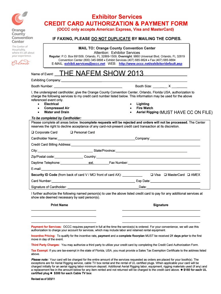 THE NAF EM SHOW 2013 ... Download / print forms http://www.occc.net/ exhibitor/default.asp ..... 208 VOLT ELECTRICAL SERVICE ORDER FORM 2013.