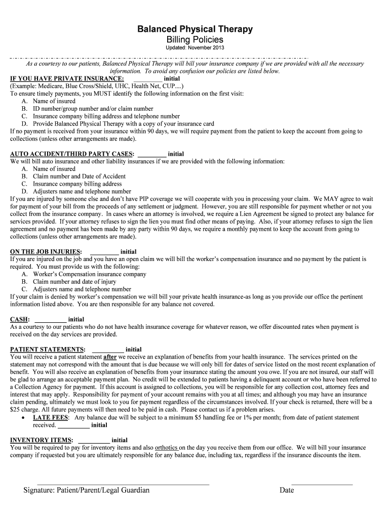 Get the free Balanced Physical Therapy Billing Policies - www2 balancedpt