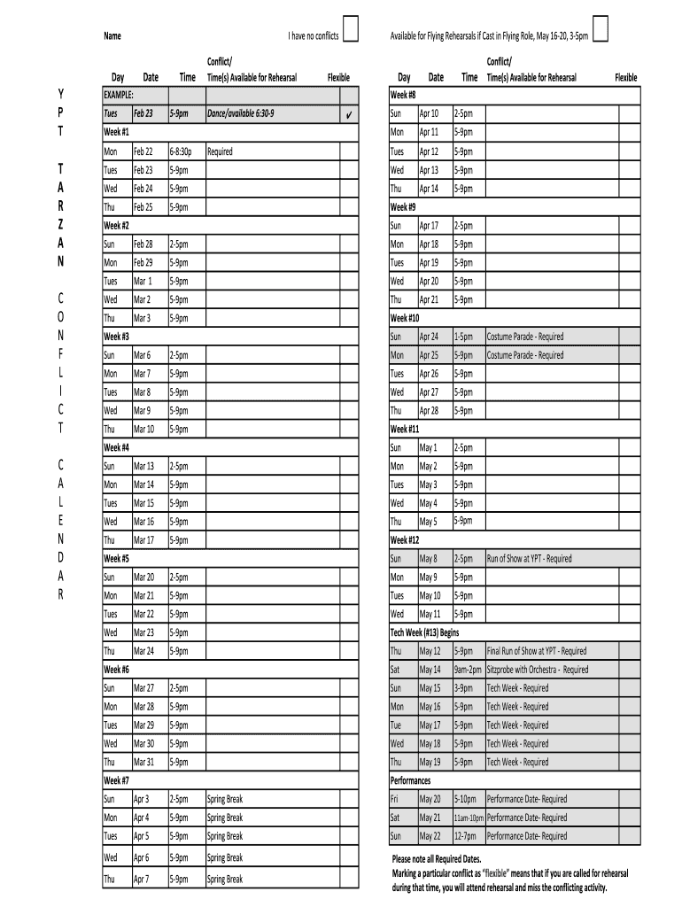 Young People s Theater TarzanConflict&Calendar& Being! Ina!productions!a!big!commitment.!! It s!important!to consider!that!accepting!a!role!means!