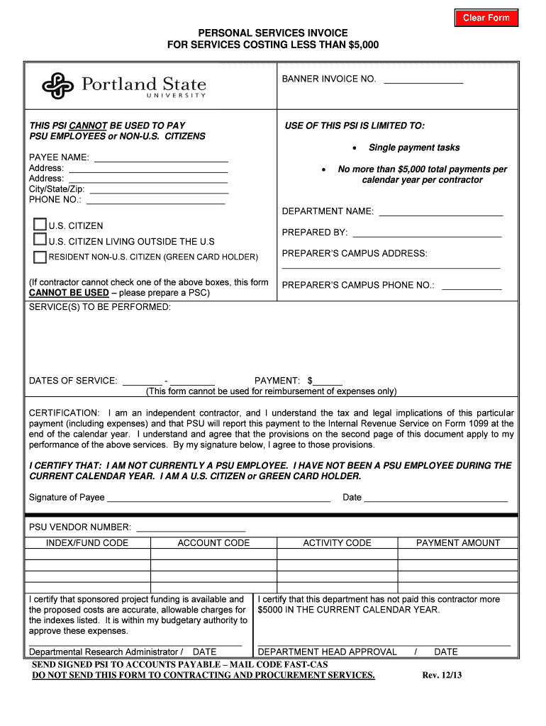Get the free FOR SERVICES COSTING LESS THAN $5,000 - pdx