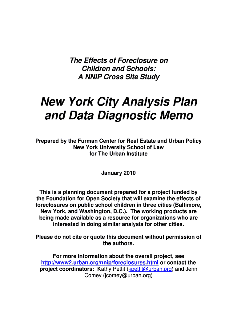 Get the free New York City Analysis Plan and Data Diagnostic Memo - National ... - neighborhoodin...