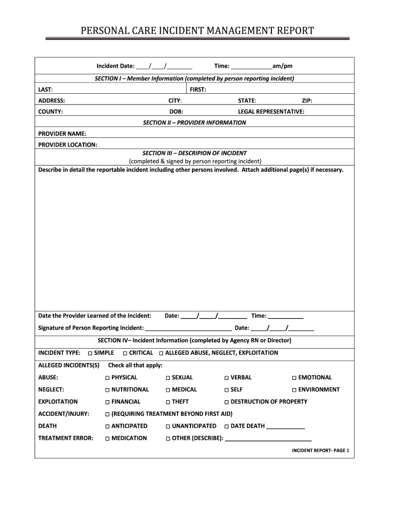 How to fill out personal care incident management