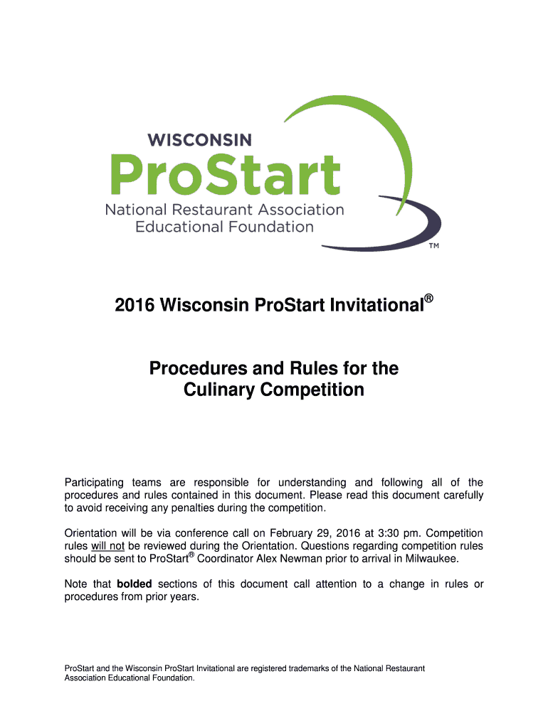 2016 Wisconsin Pro Start Invitational Procedures and Rules for the Culinary Competition Participating teams are responsible for understanding and following all the procedures and rules contained in