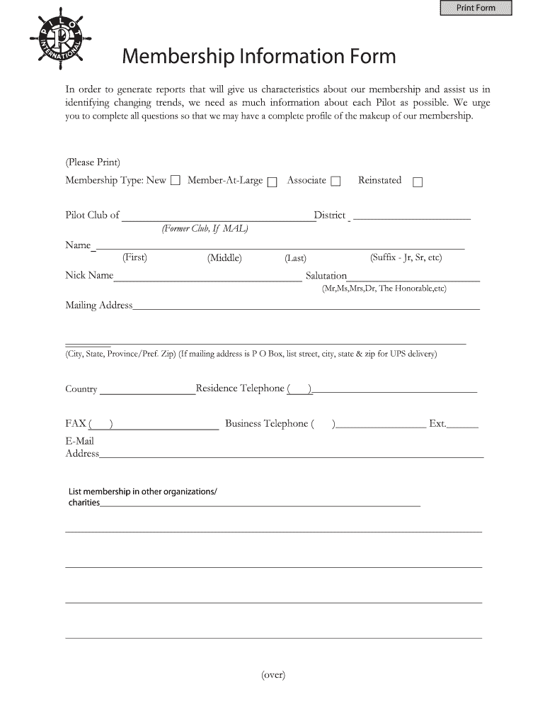 Membership Information Form In order to generate reports that will give us characteristics about our membership and assist us in identifying changing trends, we need ...