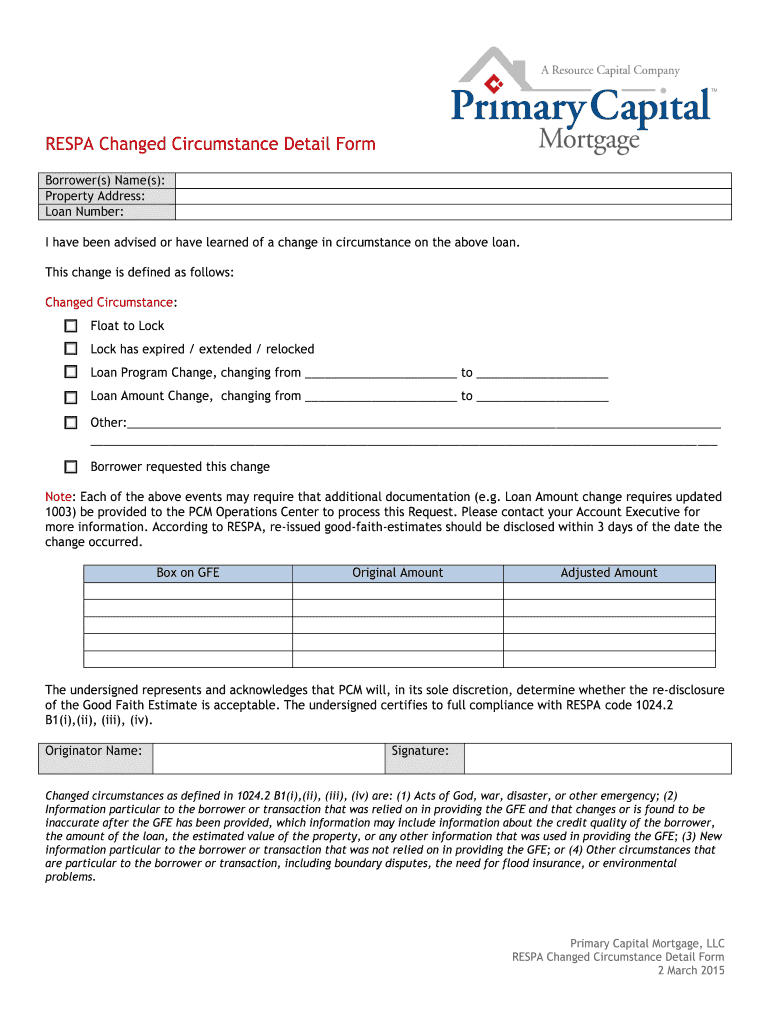 Get the free RESPA Changed Circumstance Detail Form