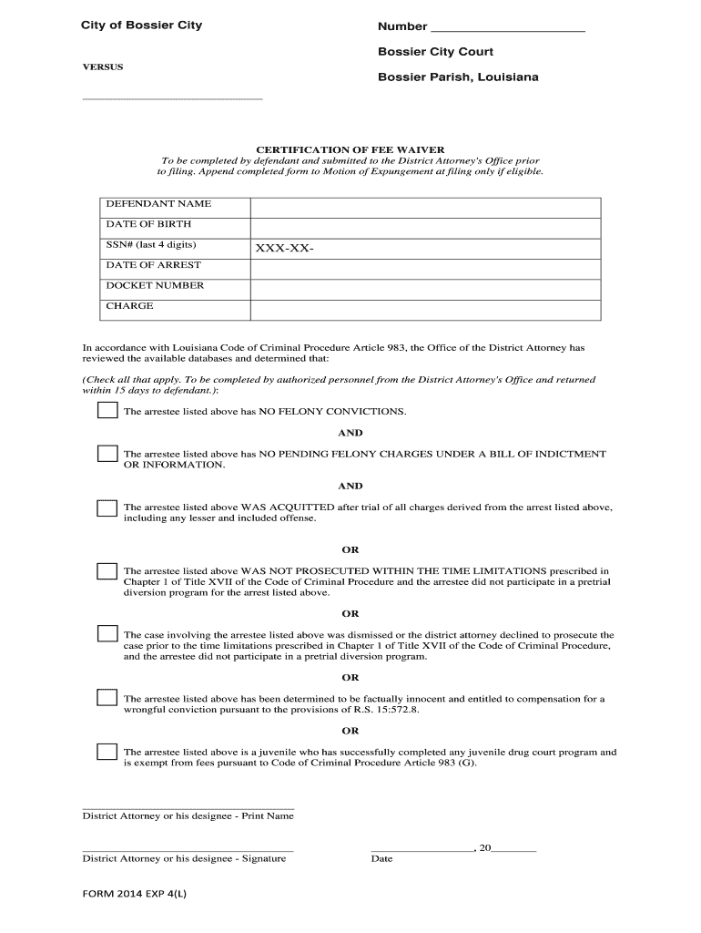 Get the free STATE OF LOUISIANA NO. DIV Bossier City Court - bossiercitycourt
