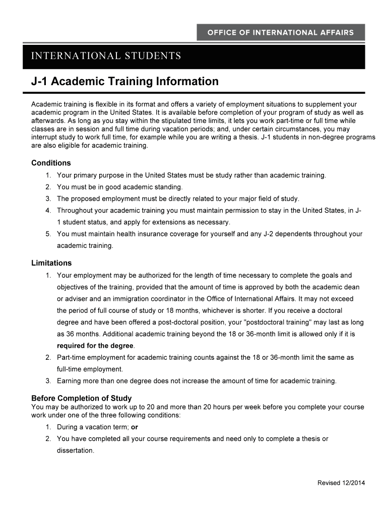 J-1 visa holders who want to engage in academic training related to their field of study are required to file j-1 academic trainingdocx.
