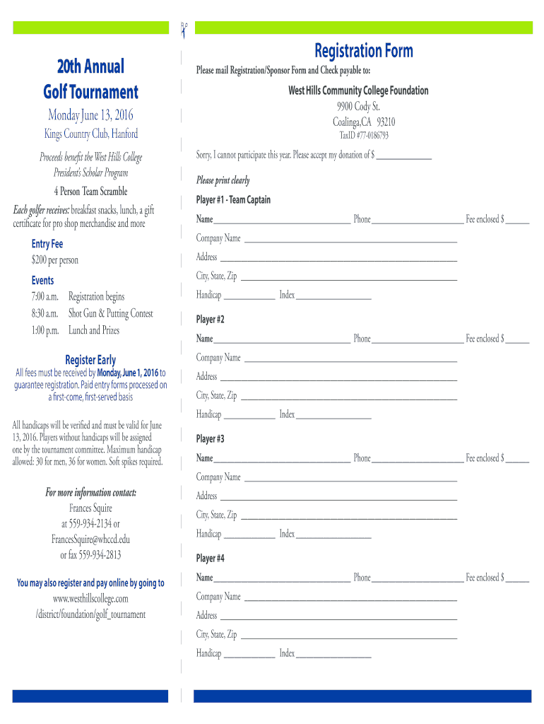 The WHCCF Presidents Scholars Golf form can be filled out online or submitted in person at the event.