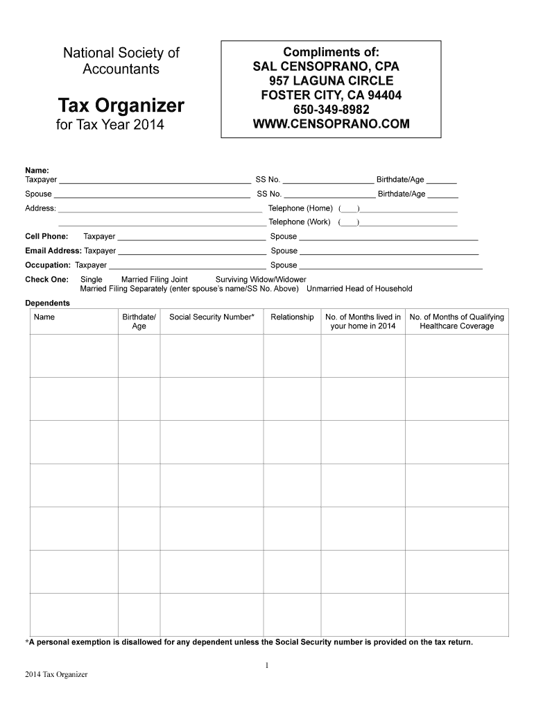 Get the free National Society of SAL CENSOPRANO, CPA 957 LAGUNA CIRCLE ...