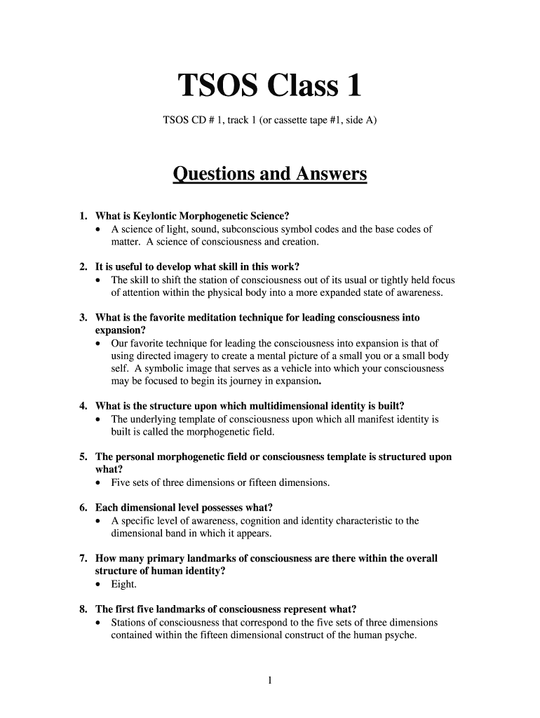 SOS Class 1 SOS CD # 1, track 1 (or cassette tape #1, side A) Questions and Answers 1. What is Baltic Morphogenetic Science? A science of light, sound, subconscious symbol codes and the base codes