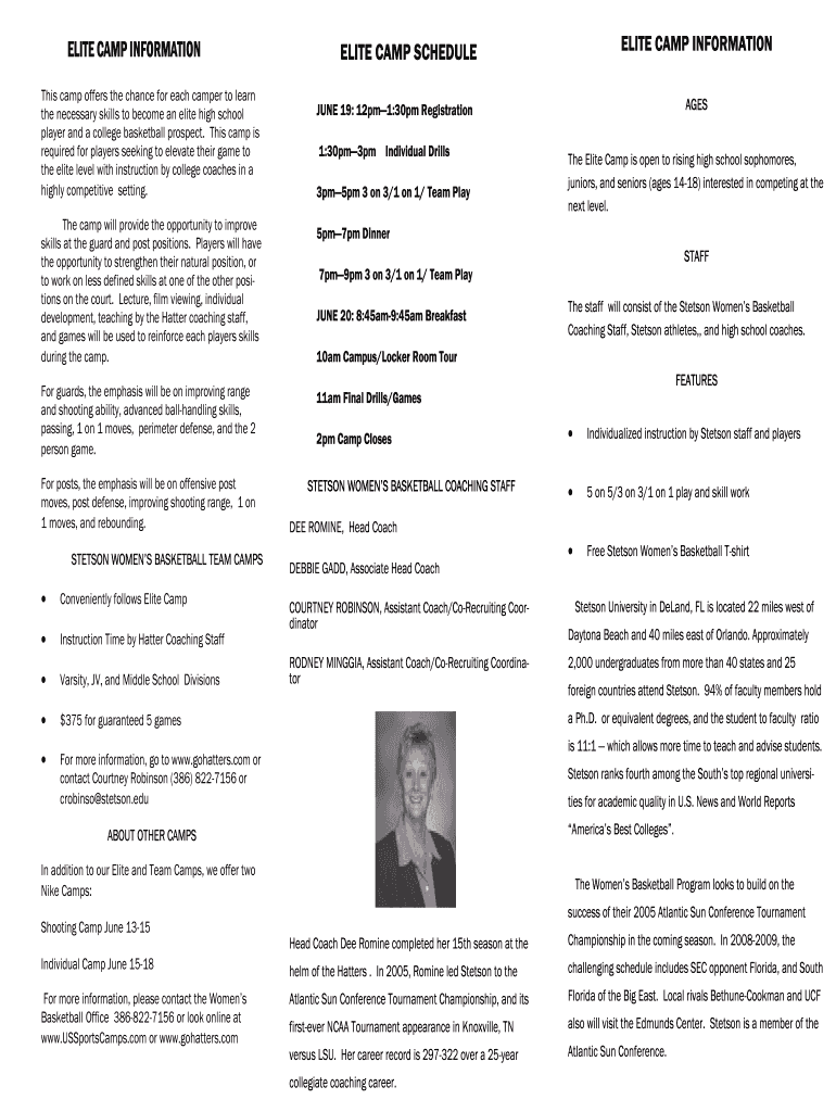 Get the free Elite camp information elite camp schedule elite camp information
