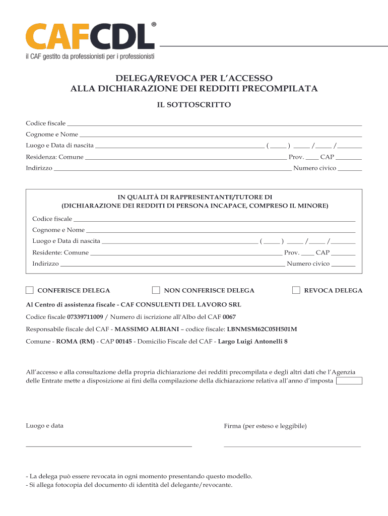 Delegarevoca per laccesso alla can be filled out by providing the required information and following the instructions on the form.