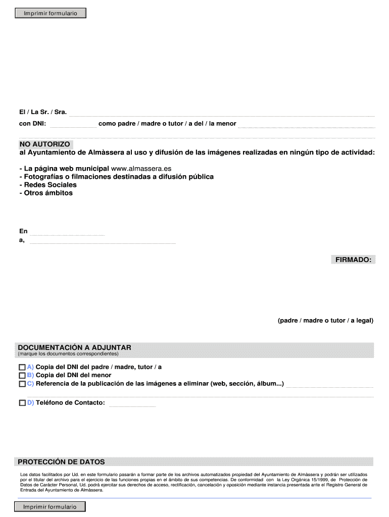 No autorizo - almasseraes typically requires personal information such as name, contact details, and details of the action or permission being denied.