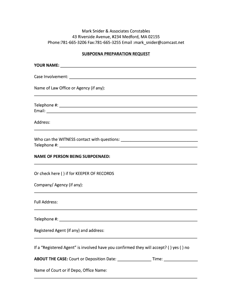 Get the free Subpoena Preparation Request Form - Snider & D'Amato