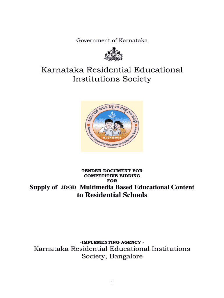 1GovG GG Government of Karnataka Residential Educational Institutions Society TENDER DOCUMENT FOR COMPETITIVE BIDDING FOR Supply of 2D/3D Multimedia Based Educational Content to Residential Schools