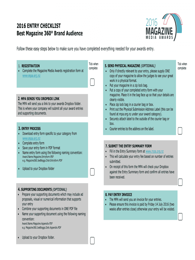 Get the free 2016 ENTRY CHECKLIST Best Magazine 360 Brand Audience - mpa org