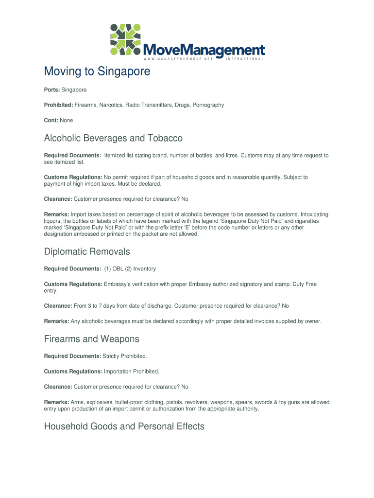 Get the free Moving to Singapore