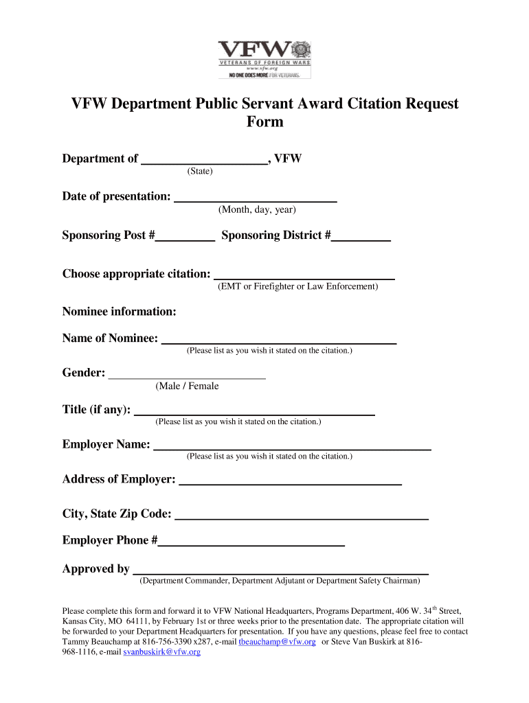 Get the free TECHNICIANS, LAW ENFORCEMENT PERSONNEL AND FIREFIGHTERS - vfw