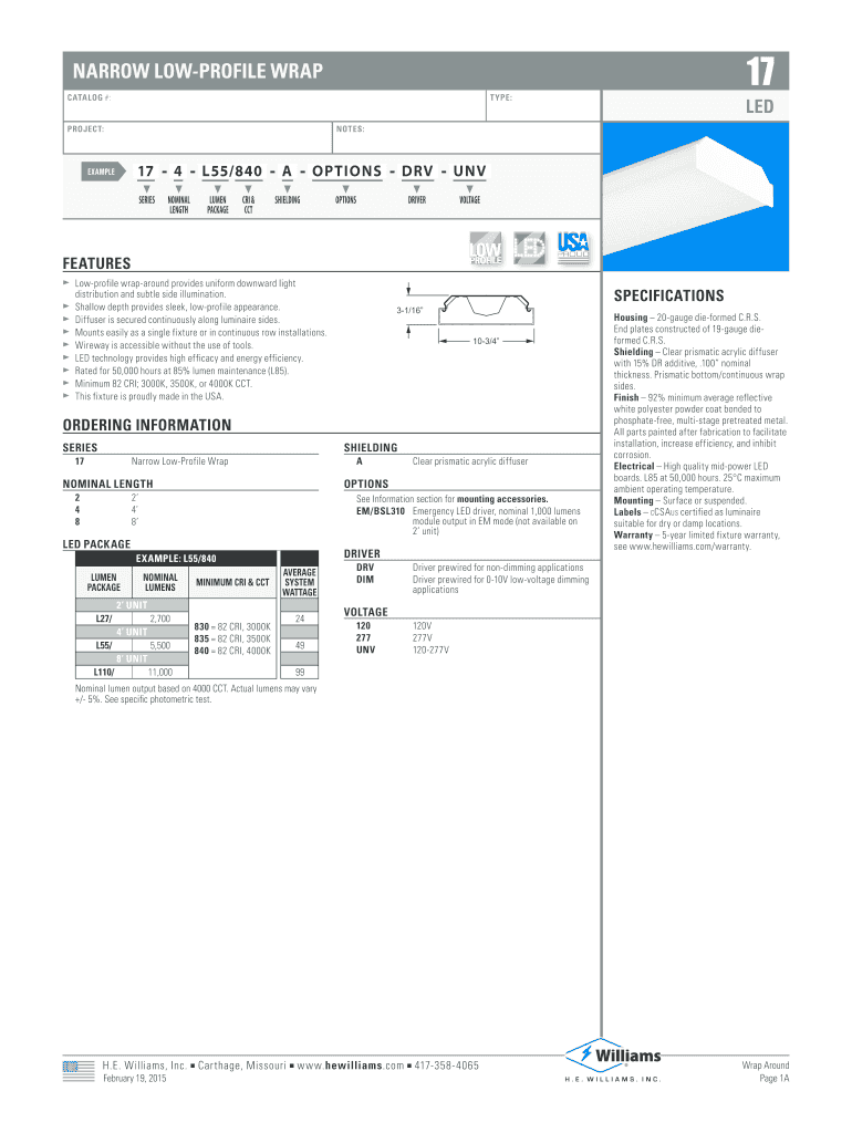 H.E. Williams, Inc. Carthage, Missouri www.hewilliams.com 417-358-4065 Wrap Around Page 1A CATALOG : TYPE: PROJECT: NOTES: NARROW LOW-PROFILE WRAP 17