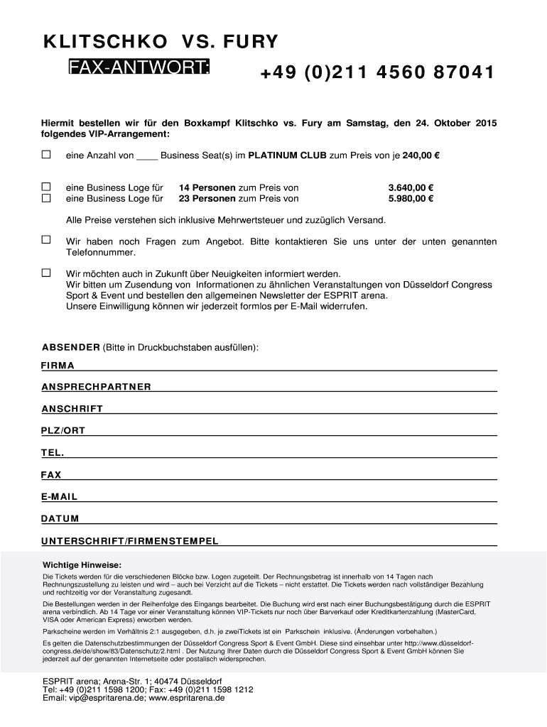 VIP-Angebote fr Klitschko vs can be filled out online or through a physical form provided by the event organizers.