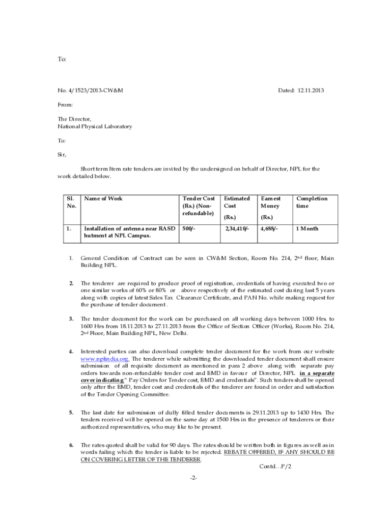 Get the free No. 4/1523/2013-CW&M Dated: 12.11.2013 From: The Director ...
