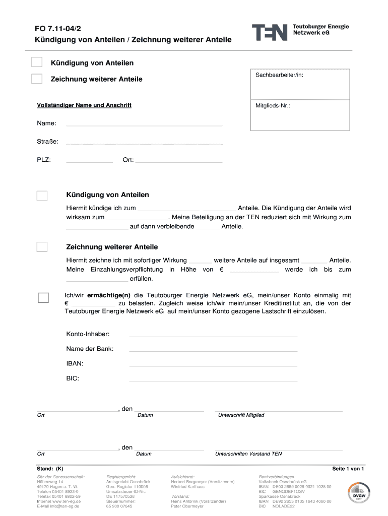 Get the free FO 7.11-04/2 Kndigung von Anteilen / Zeichnung weiterer ... - ten-eg