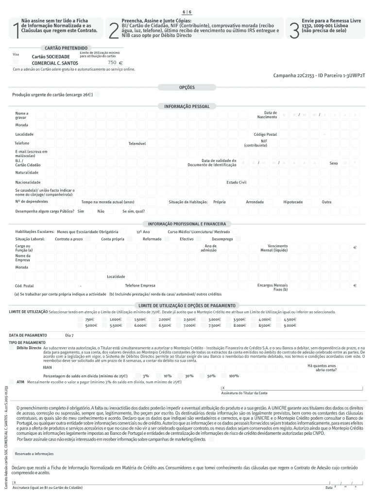 Get the free 1 6 CARTO DE CRDITO PARTICULAR SOC. COMERCIAL C ... - adesaocartao montepiocredito