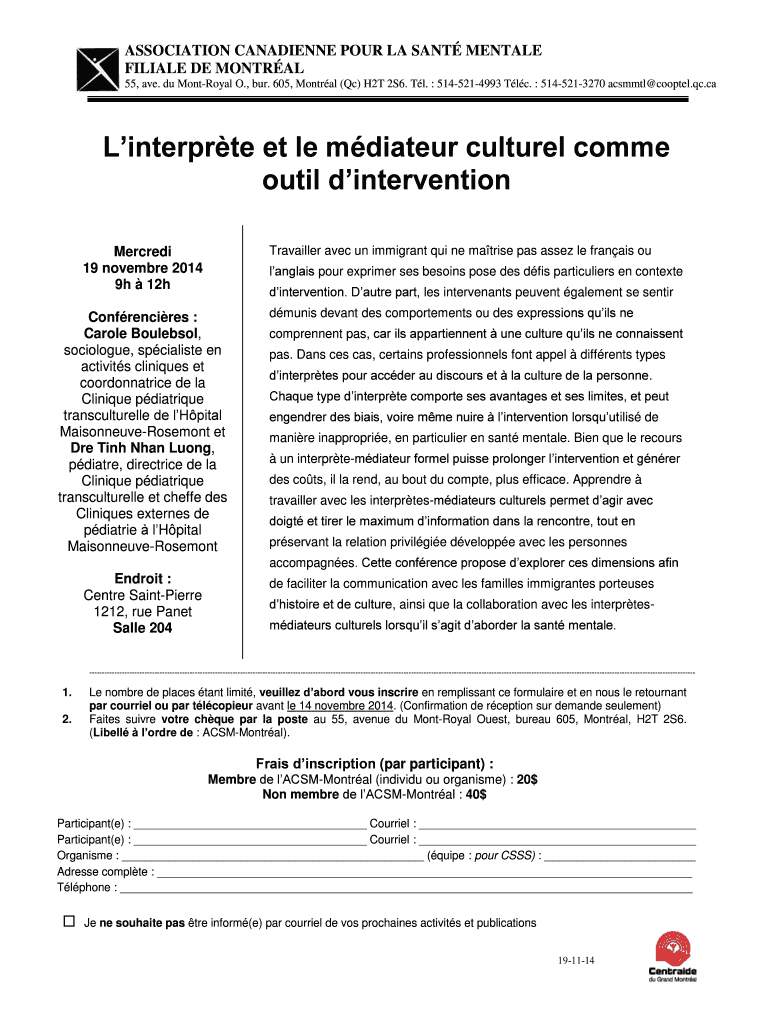 Get the free Linterprte et le mdiateur culturel comme outil d ... - acsmmontreal qc