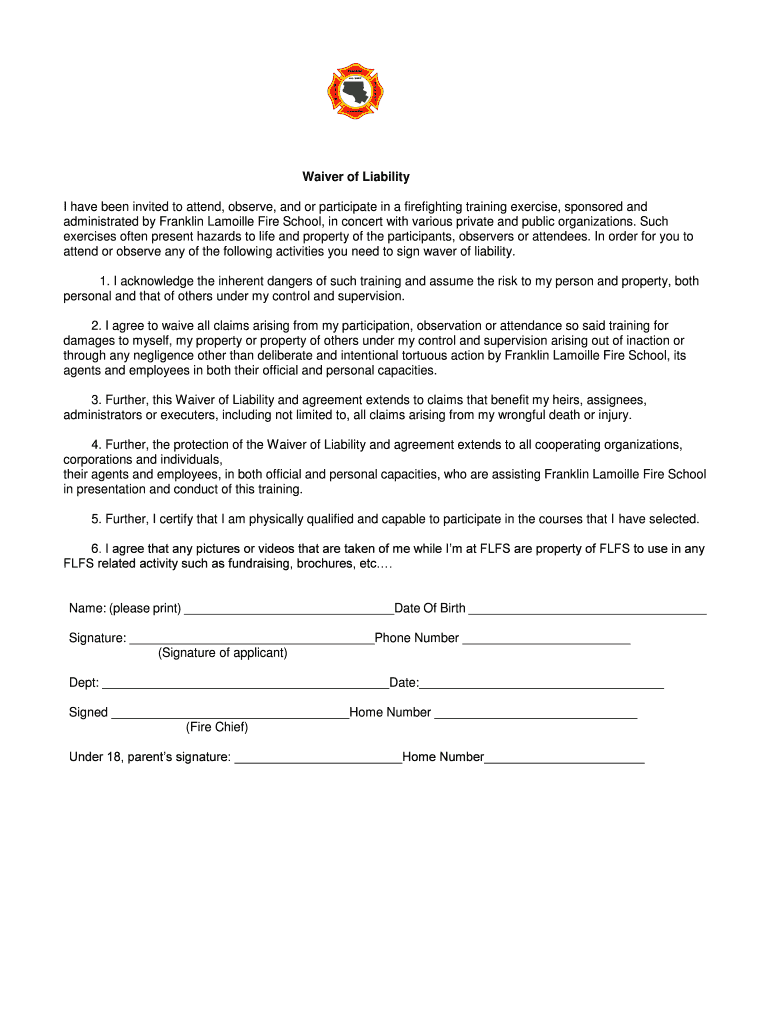 Get the free Waiver of Liability - Franklin-Lamoille Fire School