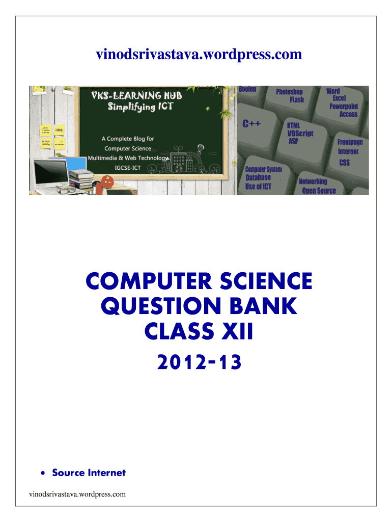 Get the free com COMPUTER SCIENCE QUESTION BANK CLASS XII 201213 Source Internet vinodsrivastava