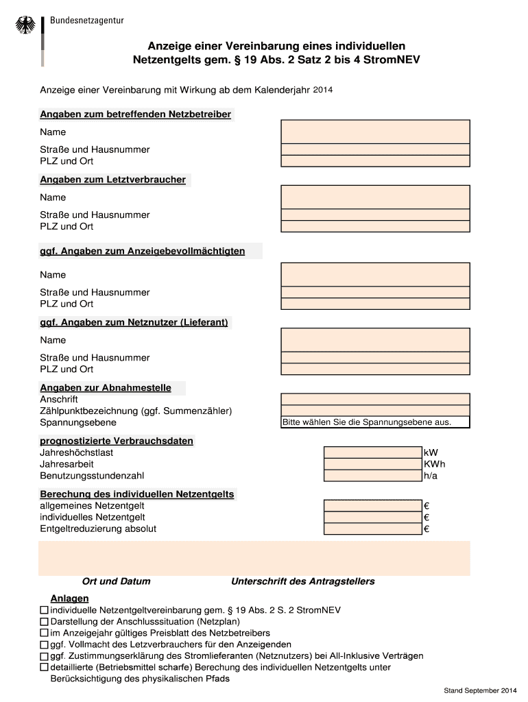 Individually Netzentgeltvereinbarung gem. 19 Abs. 2 S. 2 Strong Darstellung her Anschlusssituation (Replan) I'm Anzeigejahr g times Greenblatt DES Netzbetreibers