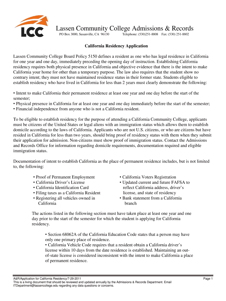 The California Residency Application is designed specifically for Lassen Community College. Other institutions may have their own forms or residency requirements, so check with those colleges for their specific processes.