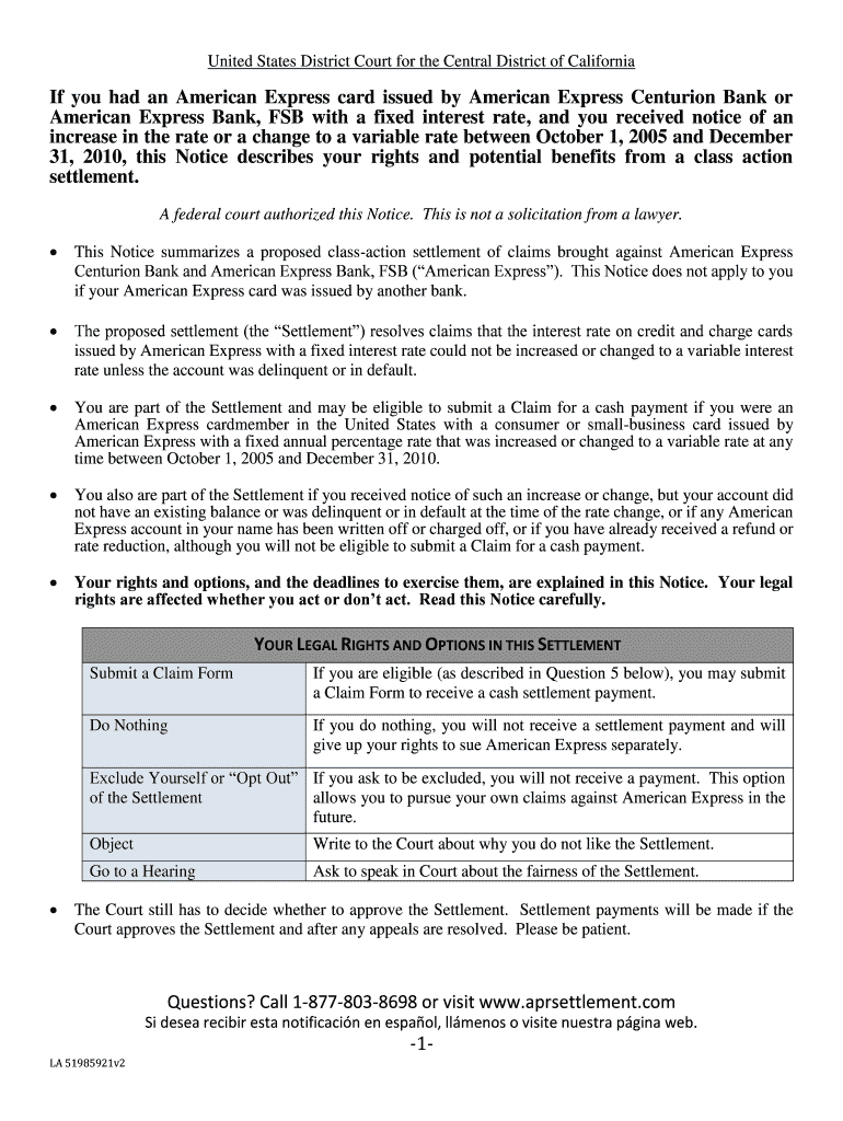 Get the free Notice - Lopez v. American Express Bank Settlement