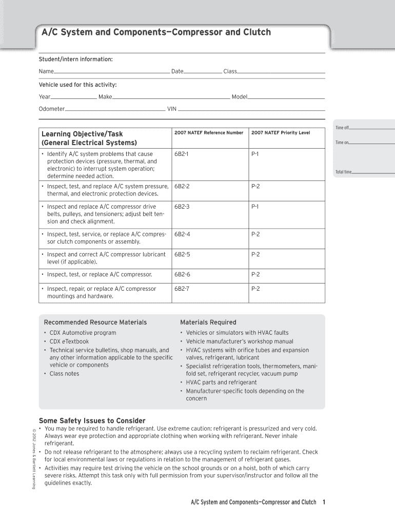 A/C System and Components Compressor and Clutch 5 2012 Jones & Bartlett Learning 5. Using the appropriate service information, determine the steps ...