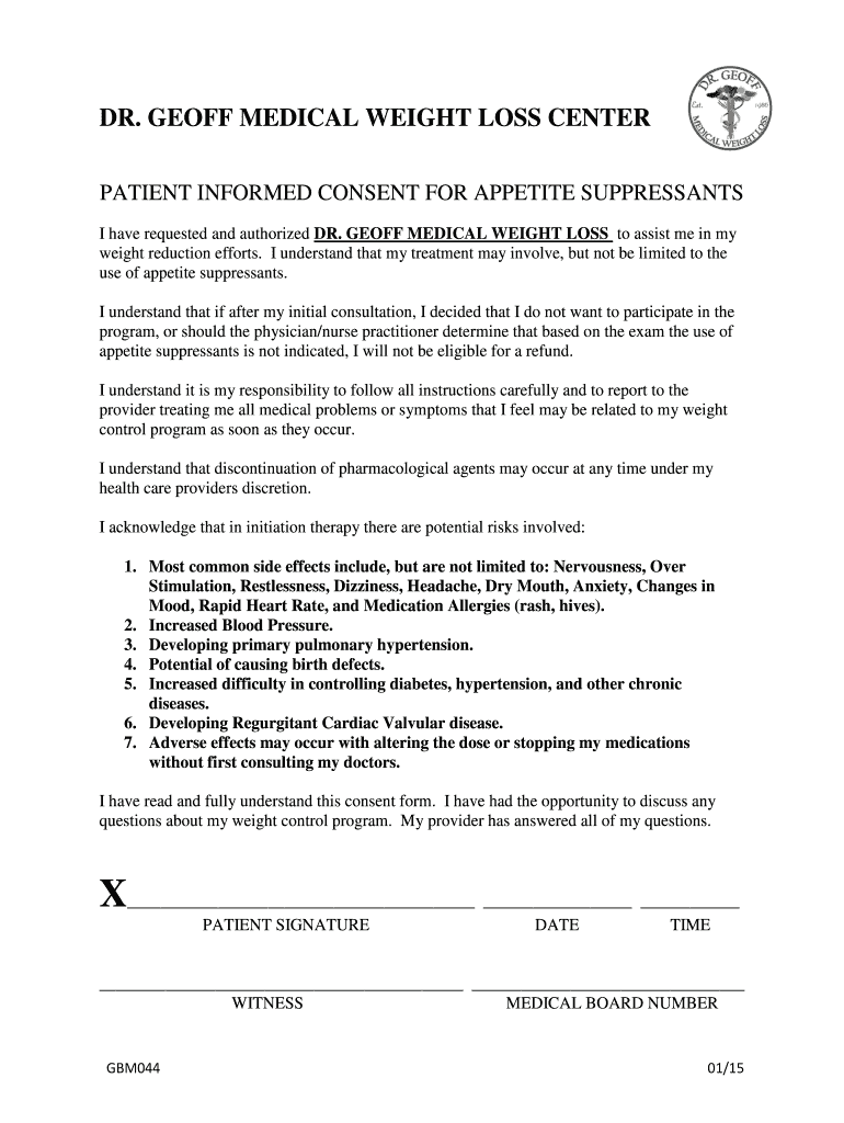 PATIENT INFORMED CONSENT FOR APPETITE SUPPRESSANTS
