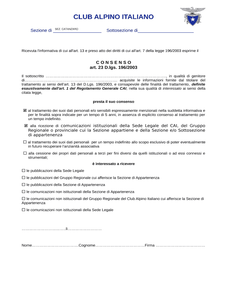 How to fill out club alpino italiano?
