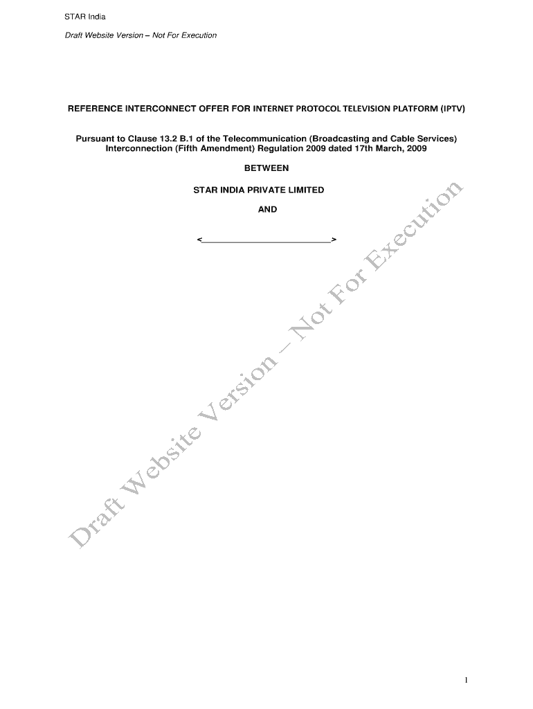 STAR India Draft Website Version Not For Execution REFERENCE INTERCONNECT OFFER FOR INTERNET PROTOCOL TELEVISION PLATFORM (IPTV) Pursuant to Clause 13.2 B.1 of the Telecommunication (Broadcasting
