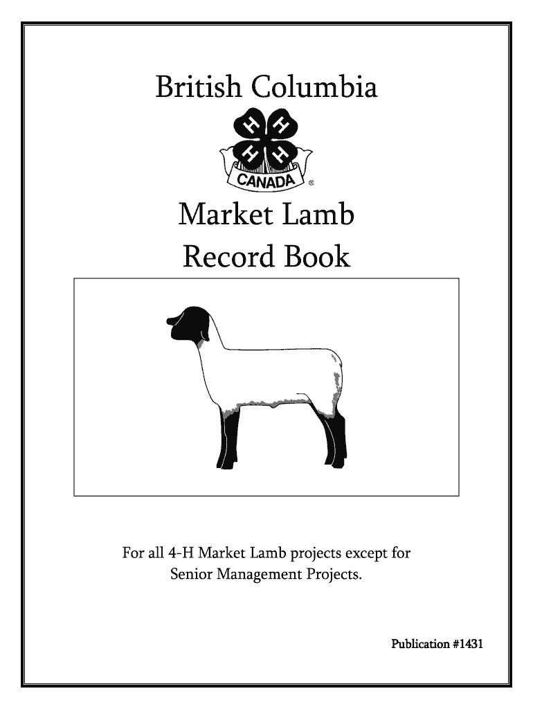 British Columbia Market Lamb Record Book For all 4H Market Lamb projects except for Senior Management Projects. Publication #1431 The 4H Motto Learn to Do by Doing The 4H Pledge I pledge My Head to
