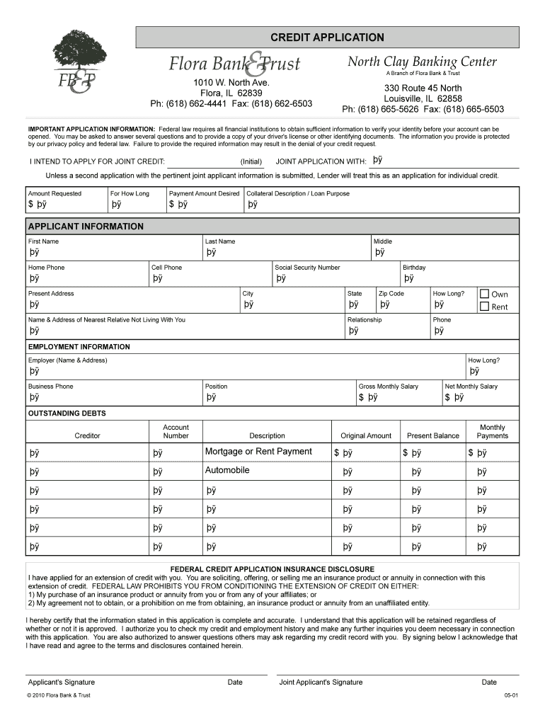 North Clay Banking Center A Branch of Flora Bank & Trust 330 Route 45 North Louisville, IL 62858 pH: (618) 665-5626 Fax: (618) 665-6503 IMPORTANT APPLICATION ...