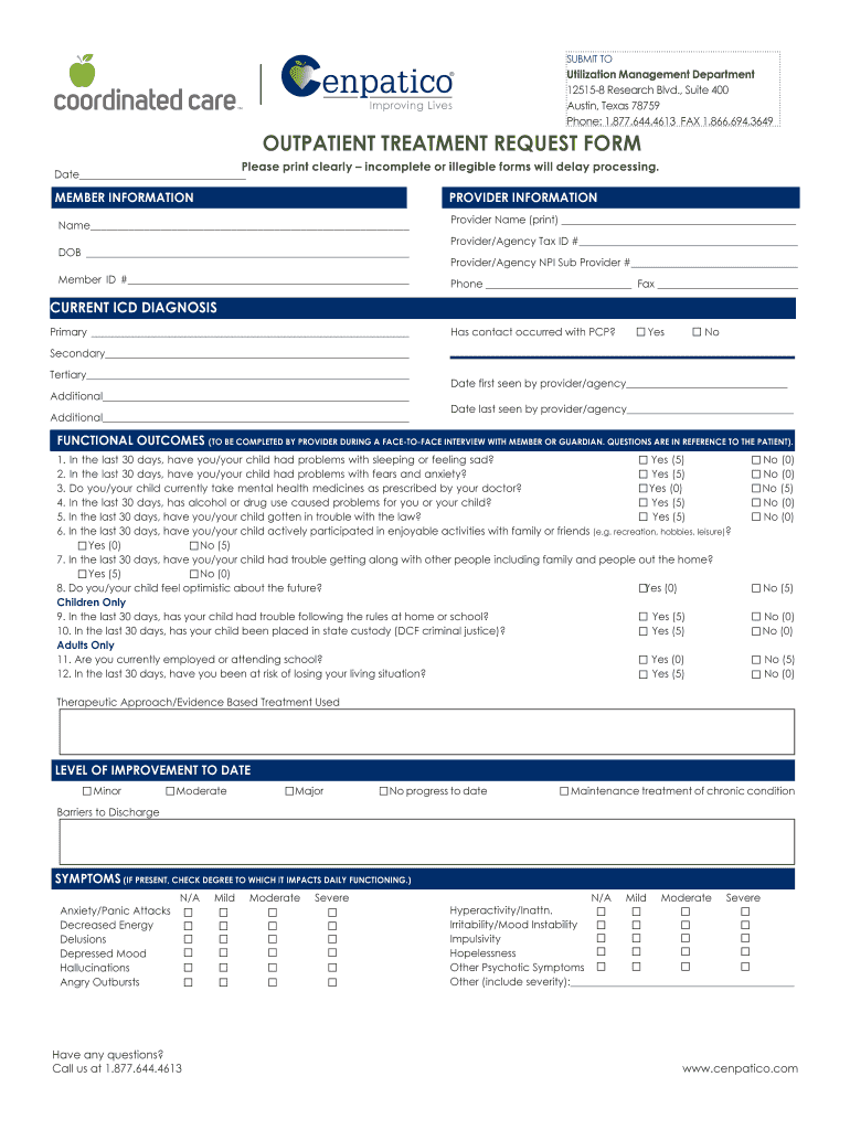 Get the free Outpatient Treatment Request Form. Outpatient Treatment Request Form