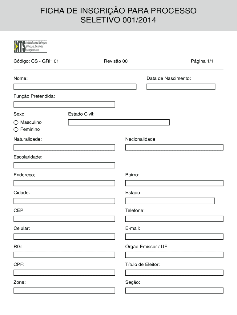 FICA de insert o para process selective 001/2014. C Diego: cs — GRH 01 revise o 00 ...